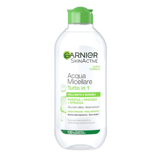 مزيل مكياج Garnier SkinActive Aqua Micellar لتنظيف البشرة. المزيل الأخضر من Garnier يزيل المكياج بشكل فعال ، بالإضافة إلى التطهير العميق للبشرة وإطفاء لمعان البشرة الدهنية دون تجفيفها. يستخدم ماء ميسيلار الأخضر من Garnier لإزالة مكياج الوجه والشفاه والعيون. يعمل على إزالة المكياج باستخدام تقنية التقاط الأوساخ ومن الوجه مثل المغناطيس ، وذلك من خلال جزيئات micelle التي تعمل على التنظيف العميق للبشرة وتنقية المسام وإزالة الزيوت منها. يتميز بأنه آمن جدًا على البشرة لأنه خالٍ من المواد الضارة بالبشرة مثل البارابين والكحول والكبريتات والزيوت والروائح العطرية. يتميز بأنه يزيل المكياج دون الحاجة للفرك القاسي أو شطف الجلد.