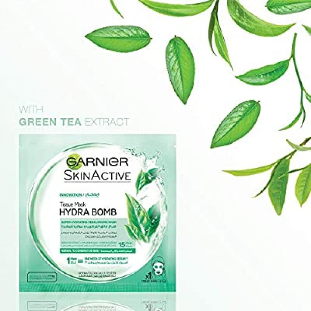 (2)تركيبة إعادة توازن مركزة مع الشاي الأخضر وحمض الهيالورونيك وسيروم مضيف للماء يضيف الماء إلى بشرتك بكثافة قناع نسيج خالٍ من البارابين .