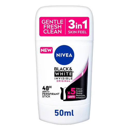 نيڤيا إنڤيزيبل للملابس السوداء والبيضاء مع حماية قوية ضد التعرق تعمل طوال 48 ساعة ، لا يترك علامات بيضاء على الأقمشة الداكنة و يمنع ظهور البقع الصفراء على الملابس الفاتحة