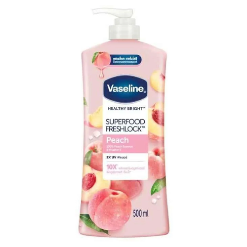 فازلين لوشن الجسم بخلاصة الخوخ من مجموعة Superfood Freshlock، المصمم خصيصًا لتوفير ترطيب طويل الأمد ومظهر صحي مشرق. يحتوي على مستخلص الخوخ الغني بمضادات الأكسدة لتعزيز نضارة البشرة وتقوية حمايتها الطبيعية، كما تعمل تقنية Freshlock على حبس الرطوبة داخل البشرة طوال اليوم دون ترك أثر دهني. 🔸 يحتوي على فيتامين B3 وC لتوحيد لون البشرة وتحسين ملمسها. 🔸 تركيبة سريعة الامتصاص وخفيفة الوزن لا تترك بقايا. 🔸 رائحة فاكهية منعشة تدوم لساعات. 🔸 يعزز إشراقة البشرة ويمنحها لمسة ناعمة ومظهرًا صحيًا. طريقة الاستخدام: ضعي كمية مناسبة من اللوشن على بشرة نظيفة وجافة، خاصة بعد الاستحمام، ودلكي بلطف حتى يتم امتصاصه بالكامل. يُستخدم مرتين يوميًا لتحقيق أفضل النتائج.