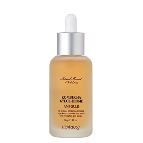أمبولة مرطبة تحتوي على 86% من خلاصة الكمبوتشا التي تم الحصول عليها عن طريق تخمير الشاي الأسود لمدة 506 ساعة تغذي البشرة وتنعم ملمس البشرة وتفتح لون البشرة.
