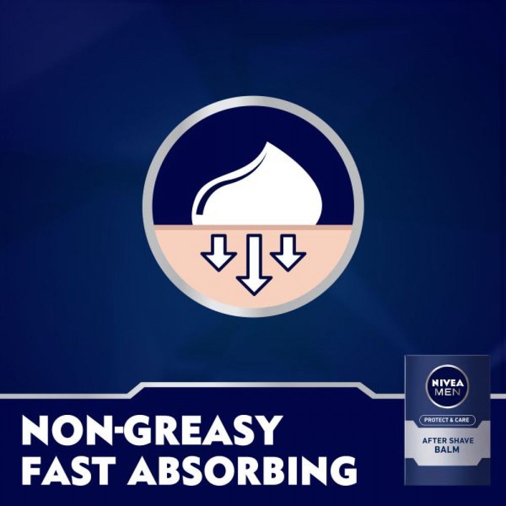 NIVEA MEN Protect & Care After Shave Balm هو تركيبة سريعة الامتصاص وغير دهنية تعمل على ترطيب بشرتك واستعادتها وتنشيطها وحمايتها على الفور بعد الحلاقة.