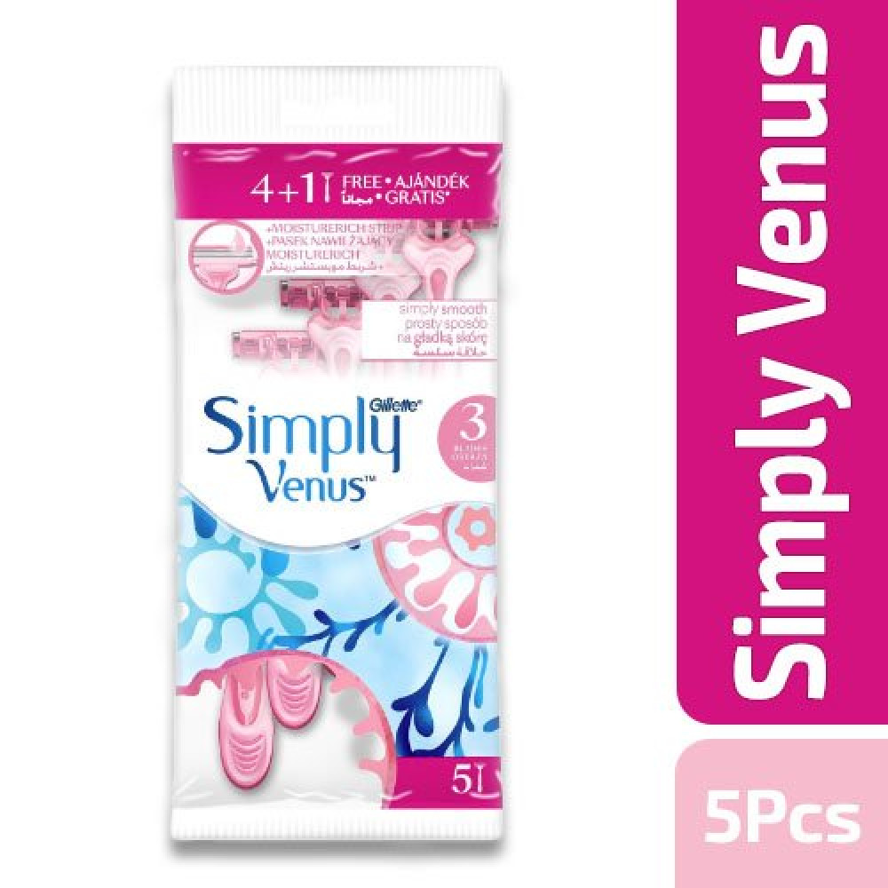 سمبلي فينوس 3 لإستخدام المرة الواحدة توفرحلاقة ناعمة و سلسة، بتكنولوجيا الشفرات الثلاث، الرأس المحوري و المقبض مريح لحلاقة قريبة و إنزلاق سلس للشفرة
