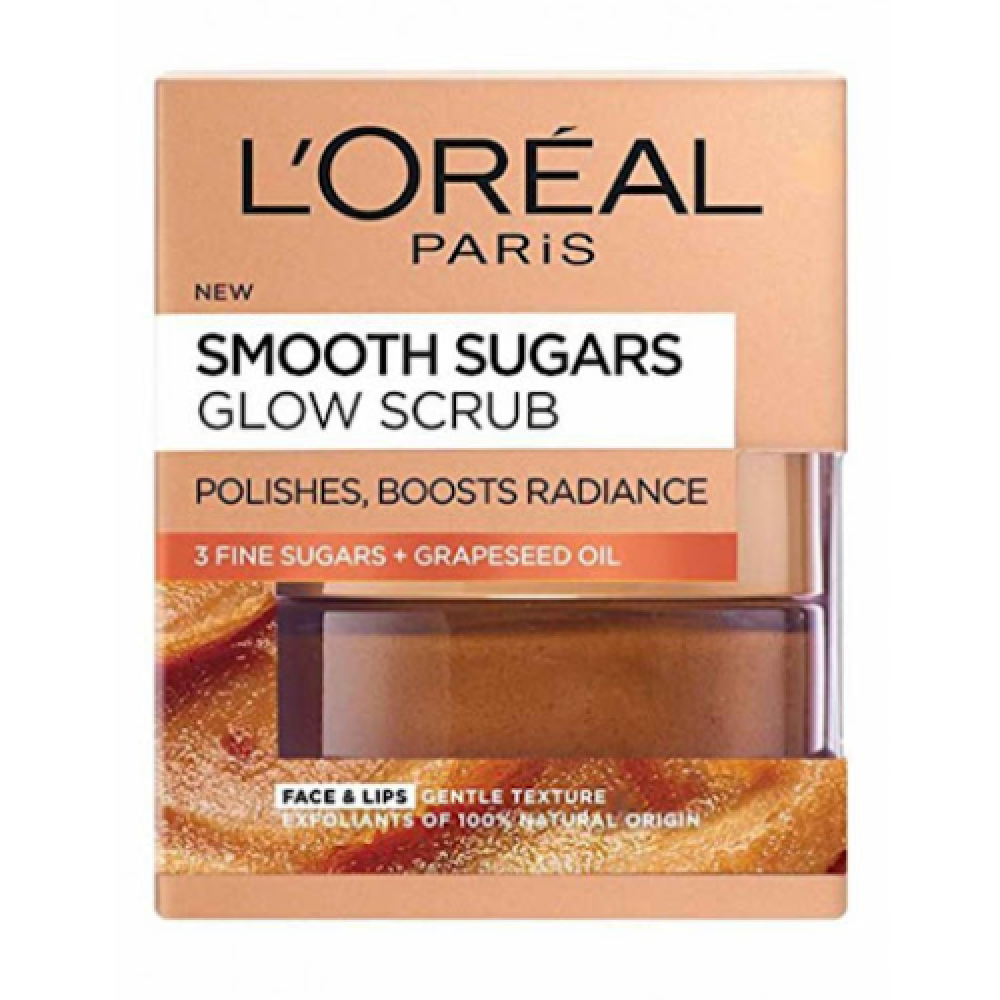 لوريـال باريس مقشر ناعم بالسكر وزيت بذور العنب لنضارة البشرة، 50 مل التفاصيل يحتوي على مزيج 3 انواع سكر خالص طبيعي (اشقر، بني وابيض) مع آساي مطحون جيدا، مونوي الغني بالمغذيات وزيت بذور العنب