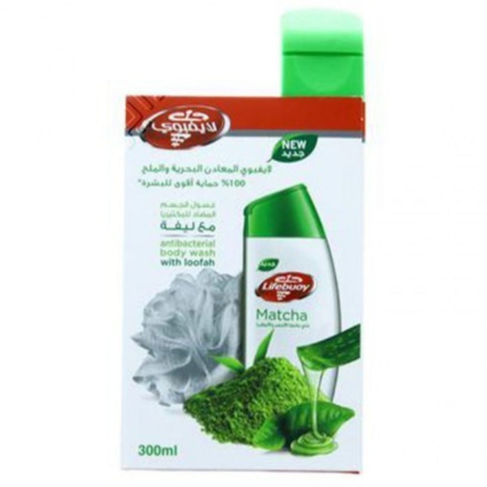 غسول الجسم المضاد للبكتيريا مع ليفة بشاي الماتشا من لايفبوي 300مل: