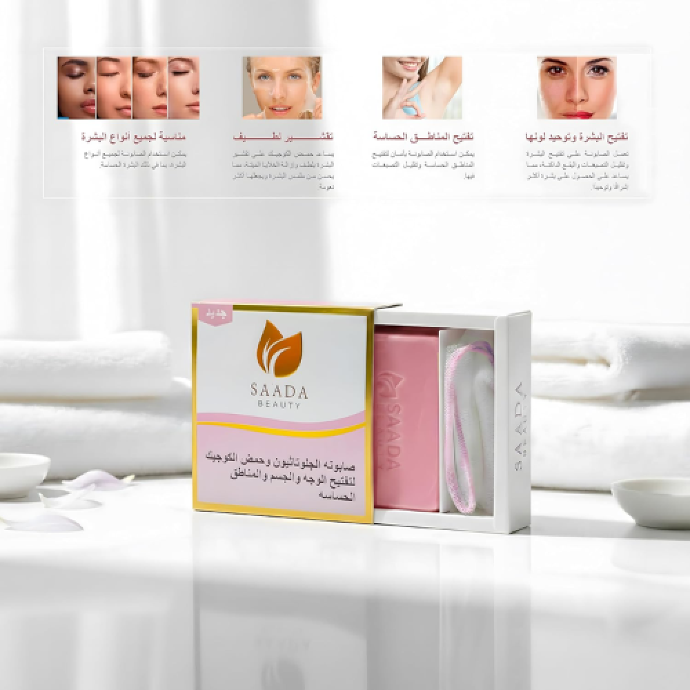 يحتوي على جميع المواد وبدورات التفتيح لتبييض البشره والتخلص من التصبغات والنمش وعلامات تقدم العمر وبقع حب الشباب. يساعد الاستخدام المنتظم لهذا المنتج في تقليل فرط التصبغ وظهور البقع في المستقبل وتنظيف الجسم جيدا ومحاربه البكتريا. يعمل كمضاد للأكسدة، مما يساهم في حماية الخلايا من الأضرار الناتجة عن الجذور الحرة. تحتوي الصابونة على الأحماض الدهنية الأساسية ، الأوميجا 3 والفيتامينات، C و E.
