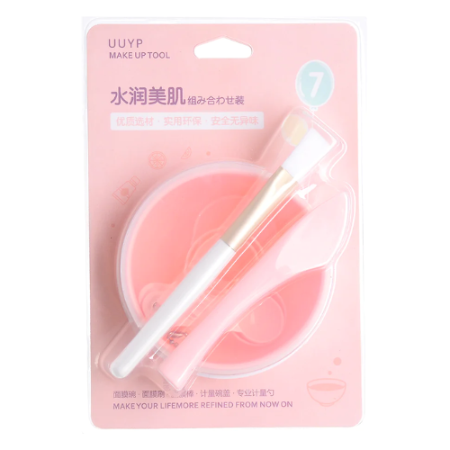 عباره عن طبق لوضع الماسك به مزود بغطاء بلاستيك شفاف مع 3ملاعق للتقليب مع فرشاه بشعيرات ناعمه علي البشره مع اداه شكل سكين لتسهيل الازاله