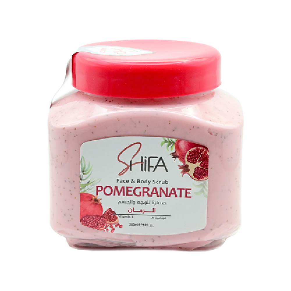 صُنع مقشر الرمان من شيفا من مستخلصات الرمان. يزيل هذا المقشر اللطيف المكياج الثقيل وخلايا الجلد الميتة. كما يمنحك بشرة صافية ومنتعشة بخطوة واحدة بسيطة. يقشر الوجه بلطف ويزيل الشوائب بقوة. يفتح المسام ويرطب البشرة لجعلها ناعمة. يحسن هذا المقشر قوام البشرة ويمنحك بشرة أكثر نعومة. مثالي للاستخدام اليومي. كما أنه يقشر ويزيل الجلد الميت والرؤوس السوداء. يتم امتصاص المكونات الفعالة بسهولة في بشرتك لشد المسامات ويمنحك مظهرًا أكثر شباباً. متوفر بسعة 500 مل.
