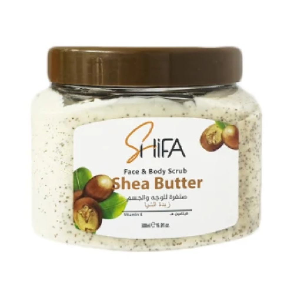 صنفرة ومنظف الوجه الطبيعي بخلاصة زبدة الشيا مركبان في مركب واحد يحتوي على تركيبتي الصنفرة والمنظف معاً وهو مركب مستخلص زبدة الشيا ليقوم بصنفرة الوجه بلطف ويزيل بقوة فائقة الشوائب والماكياج وخلايا الجلد الميتة فيترك الجلد نظيفاً نضراً في آن واحد.