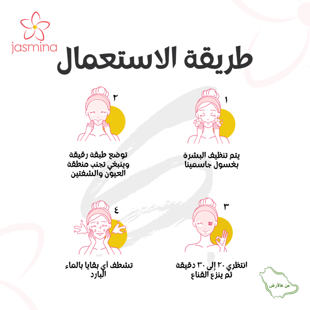 الخطوة الأولى :ضعي طبقة رقيقة على بشرة نظيفة وجافة ،مع تجنب ملامسة القناع للشفاه والعيون