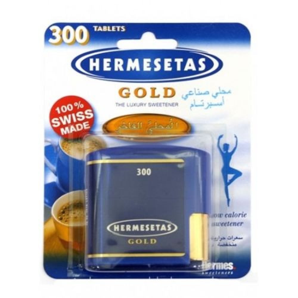 مٌحلي اصطناعي منخفض السعرات الحرارية يٌضفي هيرميستاس جولد علي ما تفضلونة من الشاي والقهوة مذاقا حلو وممتاز مناسب للأشخاص الذين يعانون من مرض السكري حيث أن كل حبة منه تحتوي علي 0.2 سعرة حرارية لذلك يعتبر هو البديل الأمثل للسكر في كل المشروبات لتحصل علي طعم لذيذ ورائع