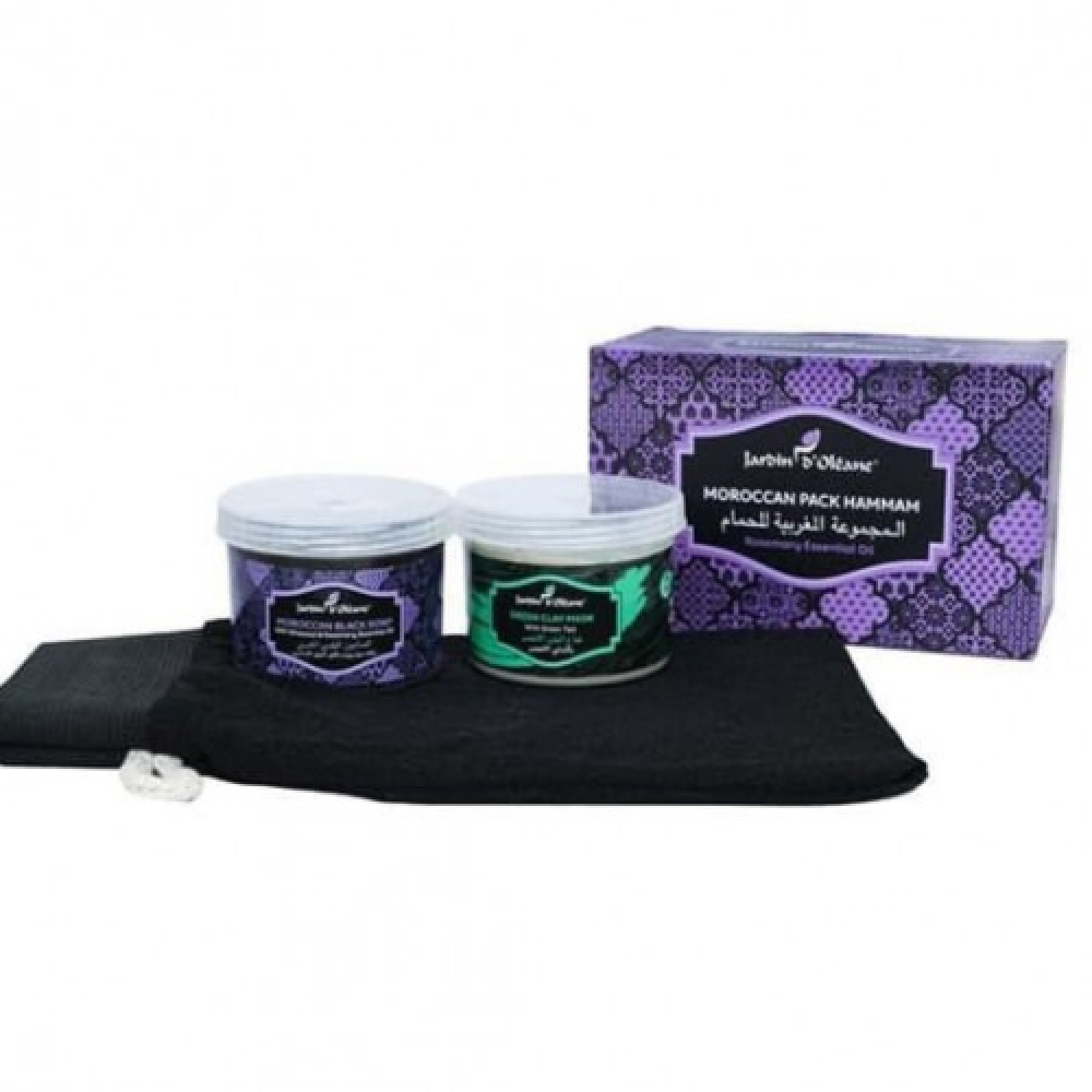 المجموعة المغربية للحمام من جاردن اوليان بزيت اكليل الجبل وقناع الطين الاخضر