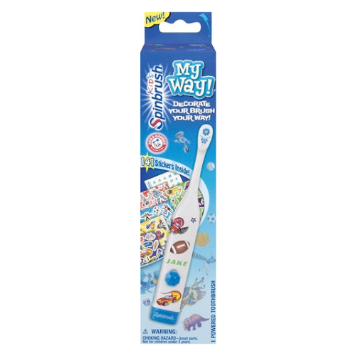 تتميز فرشاة الأسنان هذه التي تعمل بالبطارية برأس صغير للتنظيف الفعال للأفواه الصغيرة ومقبض مريح يوفر الراحة. قم بتزيين فرشاة الأسنان باستخدام 141 ملصقًا متضمنًا للحصول على مظهر مخصص.