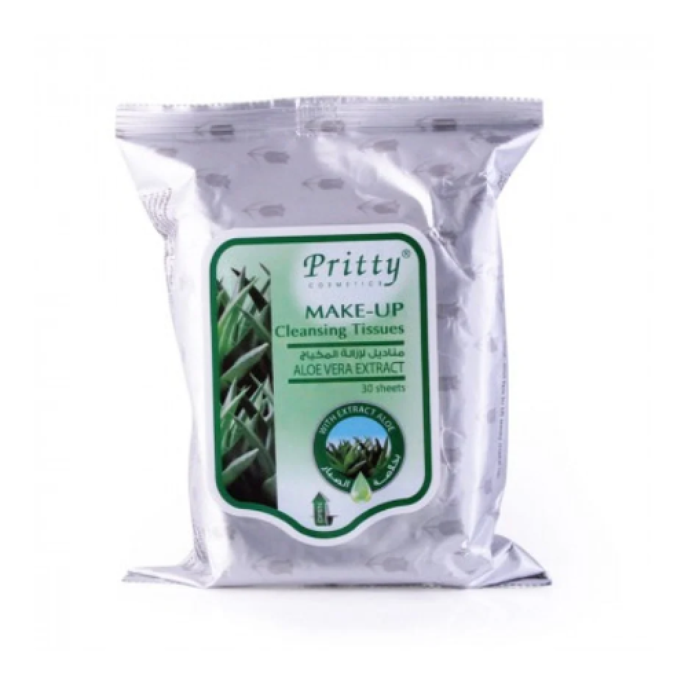 مناديل تنظيف المكياج بالصبار تحتوي على 30 منديلًا مخصصًا لإزالة المكياج بلطف وفاعلية، مع فوائد مرطبة من الصبار.