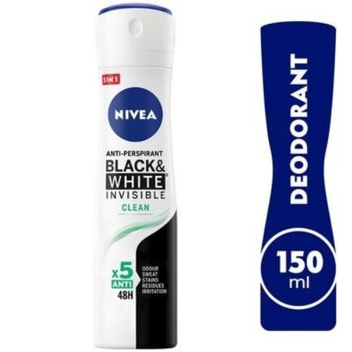 مقاوم التعرق انفيزبل اسود وابيض كلين للنساء 150 مل من نيفيا