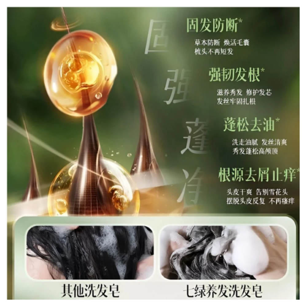 استعيدي حيوية شعرك مع الصابون الأخضر للشعر من Nature Seven، تركيبة نباتية تحتوي على أكثر من 12 نوعًا من الأعشاب والمستخلصات الطبيعية التي تعمل على تنظيف فروة الرأس، تقوية الشعر من الجذور، وتحفيز نموه بشكل صحي.