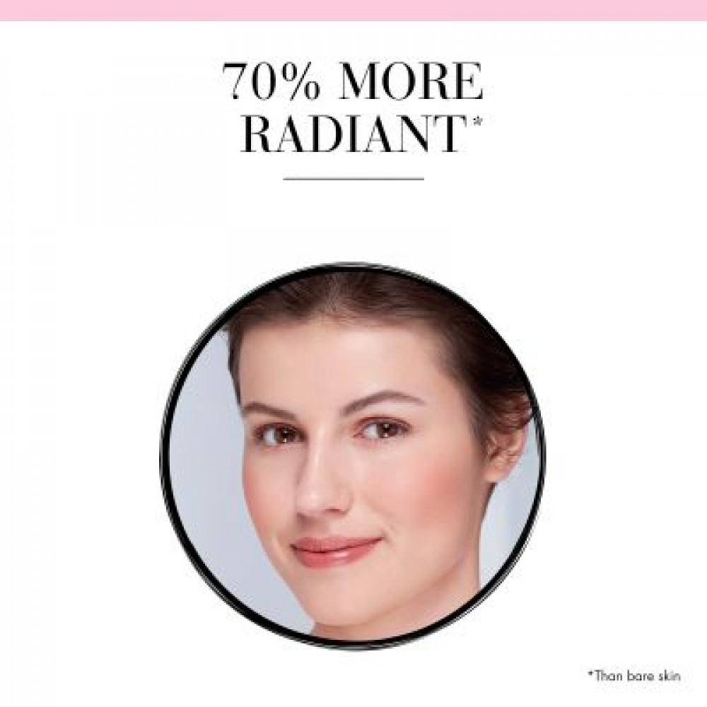 تركيبة مقاومة لعلامات التقدم في العمر تشتمل على مزيج من فيتامين سي الذي يمنحك تأثيرًا مقاومًا للإجهاد وفيتامين اي الذي يعمل كمضاد للأكسدة وفيتامين بي 5 الذي يعمل على توحيد لون البشرة.
