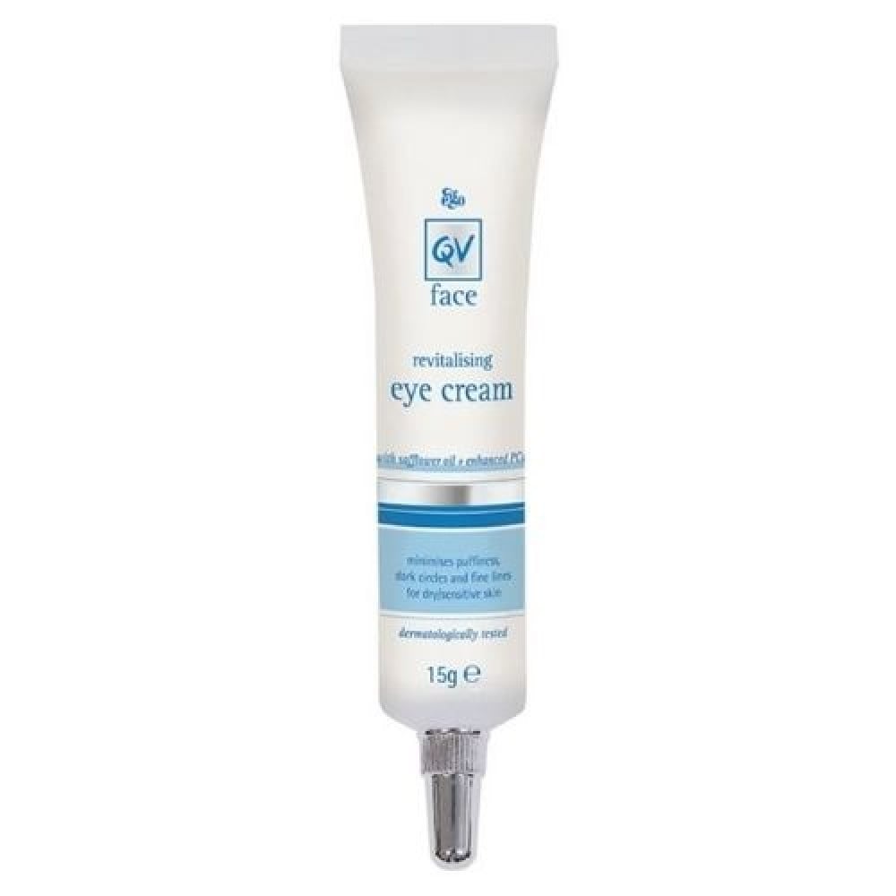 كيوفي كريم علاج هالات العين والانتفاخ. العيون المنتفخة علامة على الجفاف، استخدمي كريم QV Face Revitalising Eye Cream لترطيب هذه المنطقة ومساعدتها على أن تبدو أصغر سنا وتشعرين بمزيد من المرونة والاشراق. فهو يساعد على تخفيف الانتفاخ والهالات السوداء تحت العين ومقاوم للتجاعيد. خالي من العطور والألوان. ملمسه ناعم وخفيف صنع خصيصا لتجديد حيوية أسفل العين ويعيد نضارة المنطقة.