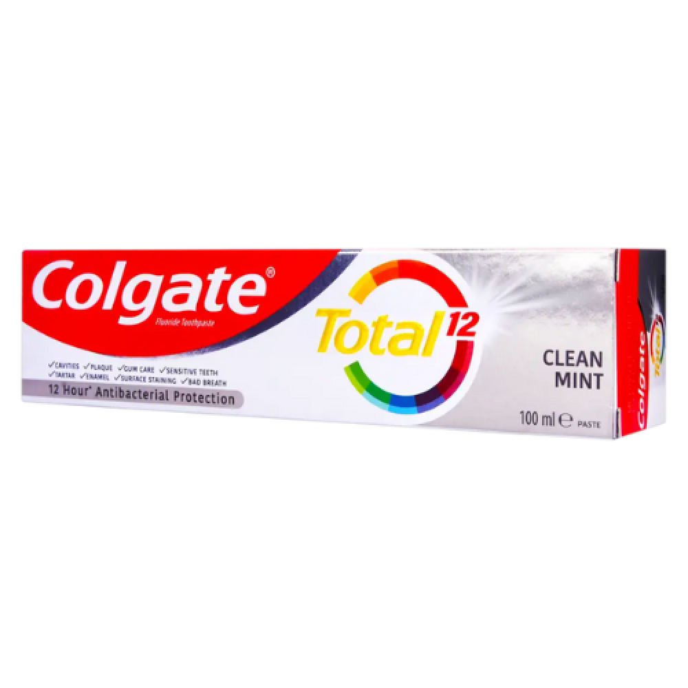 يقدم معجون أسنان كولجيت توتال حماية 12 ساعة بالنعناع 100 مل حماية شاملة لأسنانك طوال اليوم. يحتوي على تركيبة فريدة تساعد على الحفاظ على صحة اللثة والأسنان وتقوية المينا. يحارب البلاك والجير ويقلل من الجير الذي يتراكم على الأسنان. يمنحك نضارة فورية ورائحة نعناع منعشة. احصل على ابتسامة صحية ومشرقة طوال اليوم مع كولجيت توتال حماية 12 ساعة بالنعناع.