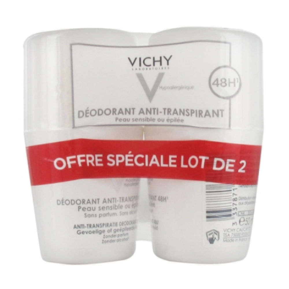 مزيل العرق المضاد للتعرق من فيشي 48 ساعة للبشرة الحساسة أو التي تعاني من إزالة الشعر 2 × 50 مل