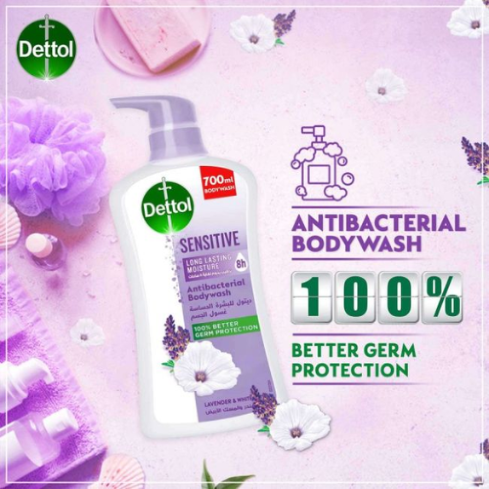 يجمع غسول الجسم ديتول المضاد للبكتيريا للبشرة الحساسة بين حماية ديتول الموثوقة من الجراثيم وعطر اللافندر والمسك الأبيض ليمنحك رطوبة تدوم 8 ساعات ويترك بشرتك صحية وناعمة.
