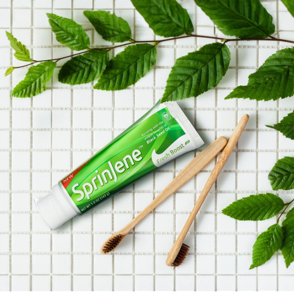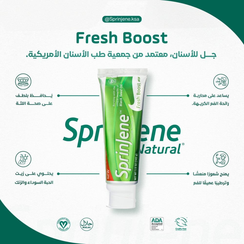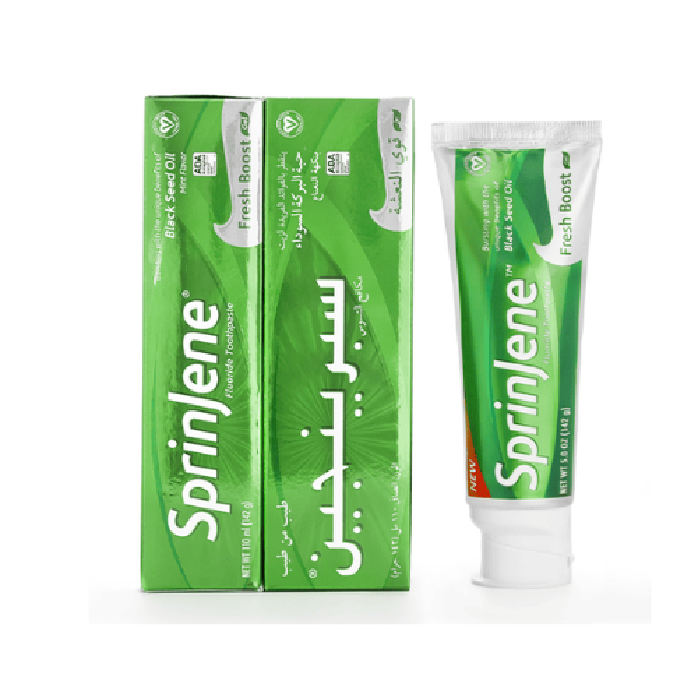 معجون الأسنان Fresh Boost من SprinJene طعمه رائع ويترك فمك مع شعور جديد، لكن الفوائد لا تتوقف عند هذا الحد. يتميز معجون الأسنان هذا بتركيبة حاصلة على براءة اختراع مع زيت الزنك والبذور السوداء. معًا،