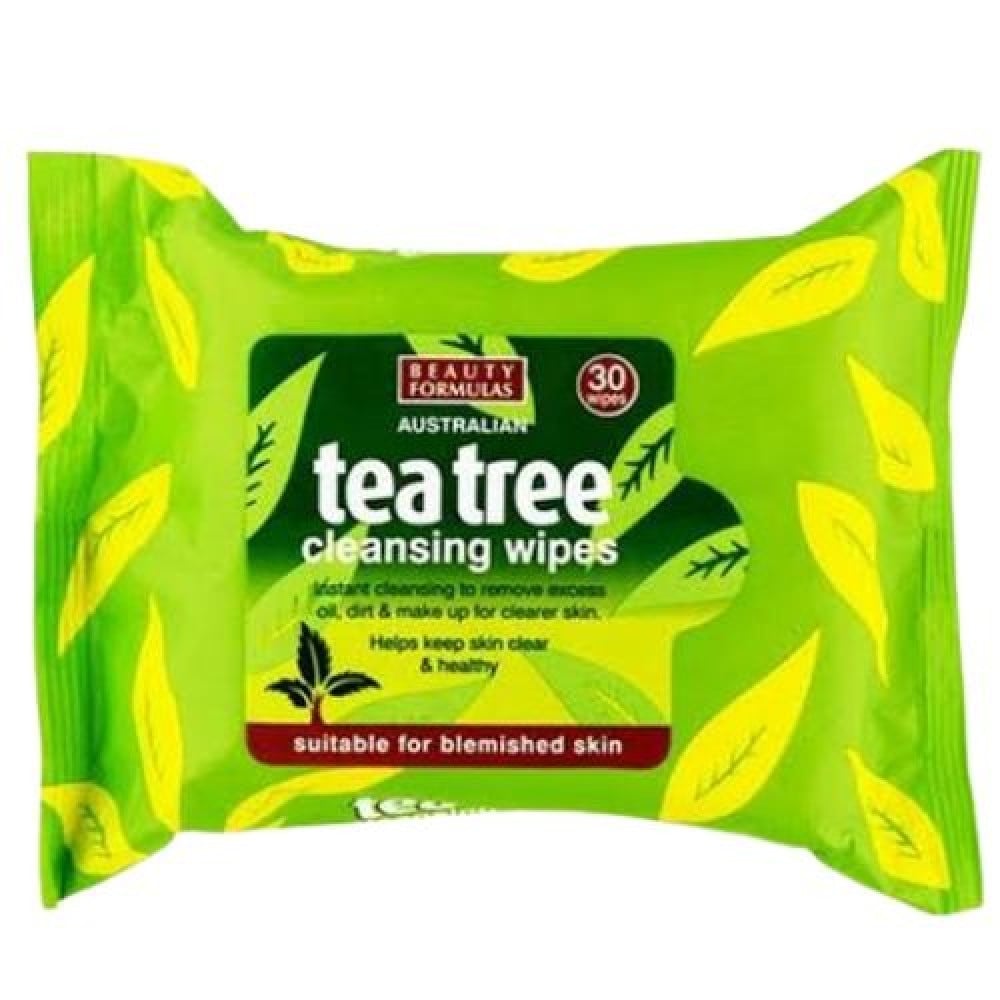 - تحتوي مناديل تنظيف الوجه من بيوتي فورميولاز على زيت شجرة الشاي الأسترالي المعروف بأنه عامل طبيعي مضاد للجراثيم بخصائص مطهرة.