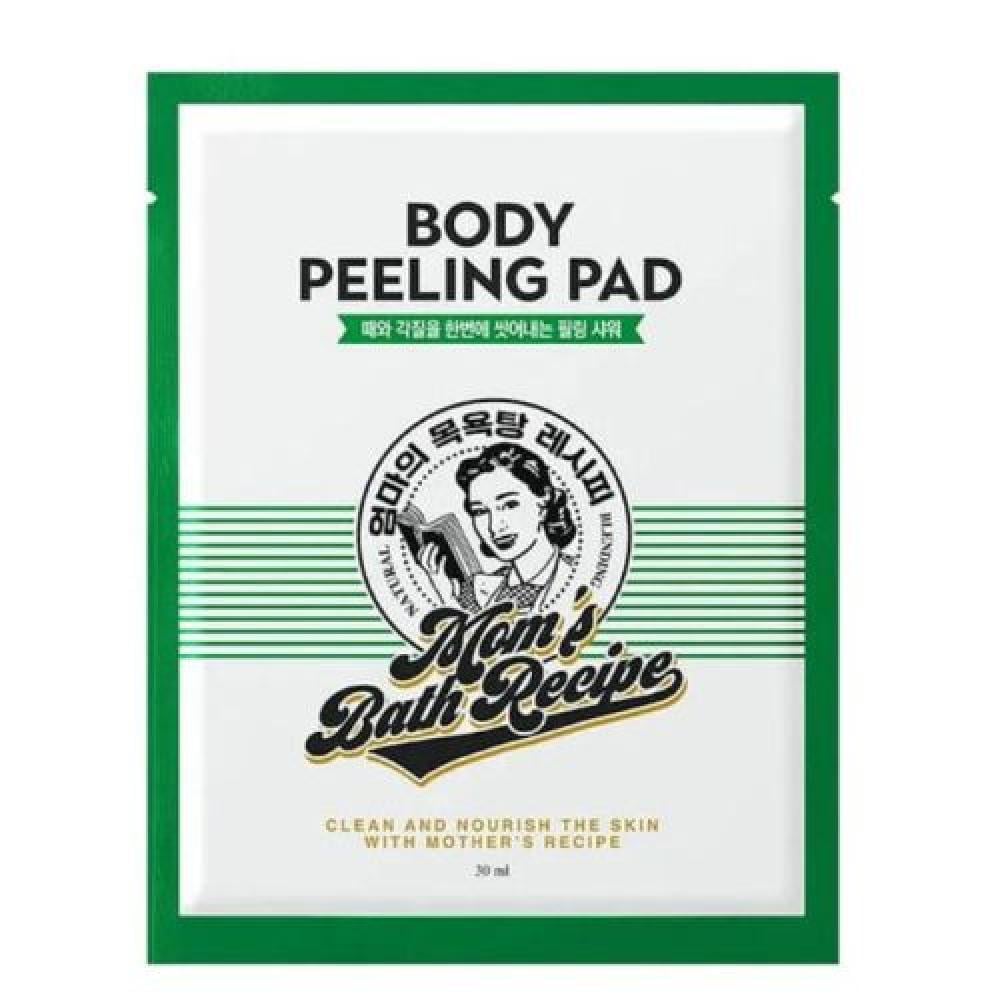 ضع يدك في Mom's Bath Recipe Body Peeling Pad وافركها على بشرة مبللة مع الجانب الأبيض للحصول على رغوة. استخدمي الجانب الأخضر على المناطق الأكثر خشونة مثل المرفقين والكاحلين. ثم، اشطفيه بالماء الفاتر.