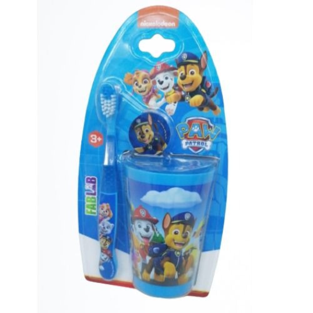 فرشاة أسنان باو باترول للاطفال مع غطاء للسفر وكوب شفط عبوة من قطعتين