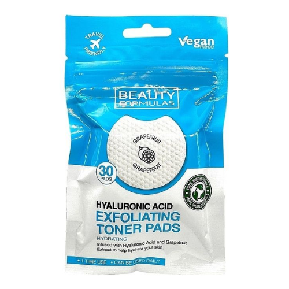 Beauty Formulas Toner Pads مقشر بحمض الهيالورونيك، تساعد وسادات التونر على توازن مستويات الحموضة في البشرة، مما يجهزها لخطوات العناية بالبشرة اللاحقة.