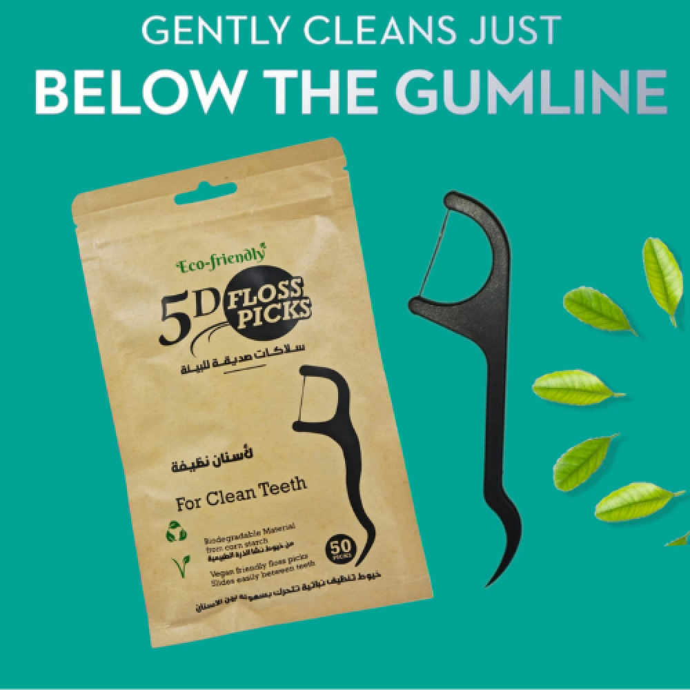 اعواد اسنان مع خيط نباتي مصنوع من نشا الذره - للاسنان الحساسة ومناسب لمرضي السكر - لطيف علي اللثه - يذيل ما بين الاسنان الأماكن التي تصعب علي فرشاة الاسنان