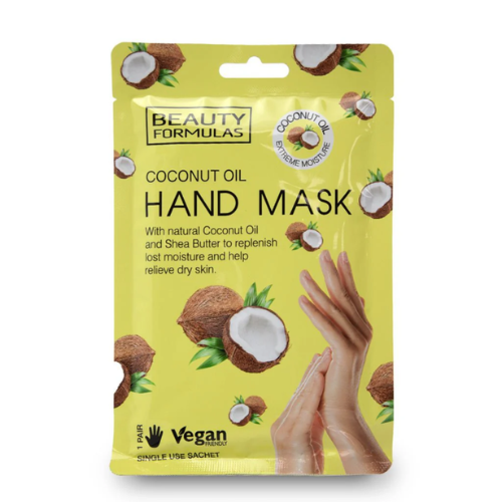 قناع ترطيب اليدين بزيت جوز الهند من Beauty Formulas. تم تركيبه خصيصًا بزيت جوز الهند وزبدة الشيا لترطيب البشرة الخشنة والمتعبة، وتجديد فقدان الرطوبة مع المساعدة على تنعيم البشرة وتنعيمها.