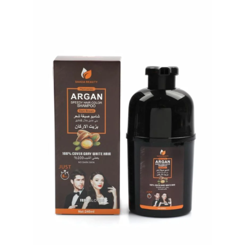سعاده بيوتي شامبو صبغة الشعر السريعة بزيت الأرغان هو صبغة شعر مؤقتة تغطي الشعر الأبيض وتمنحك لونًا بني غامق . إنه مصنوع بزيت الأرغان ، الذي يساعد على ترطيب وتغذية شعرك.